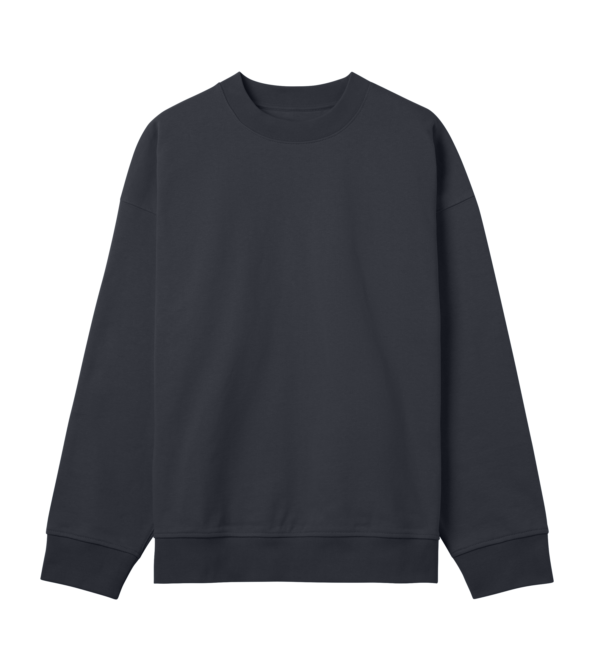 A Boxy Sweatshirt in heavy brushed fleece, made from 83% organic cotton and 17% recycled polyester, with a dry hand feel. It has a boxy, relaxed fit, with dropped shoulders plus chunky and exaggerated ribbing throughout for enhanced structure. The sweatshirt features felled shoulder seams, with inside neck tape, and twin needle straddle stitching that runs around all ribbing.